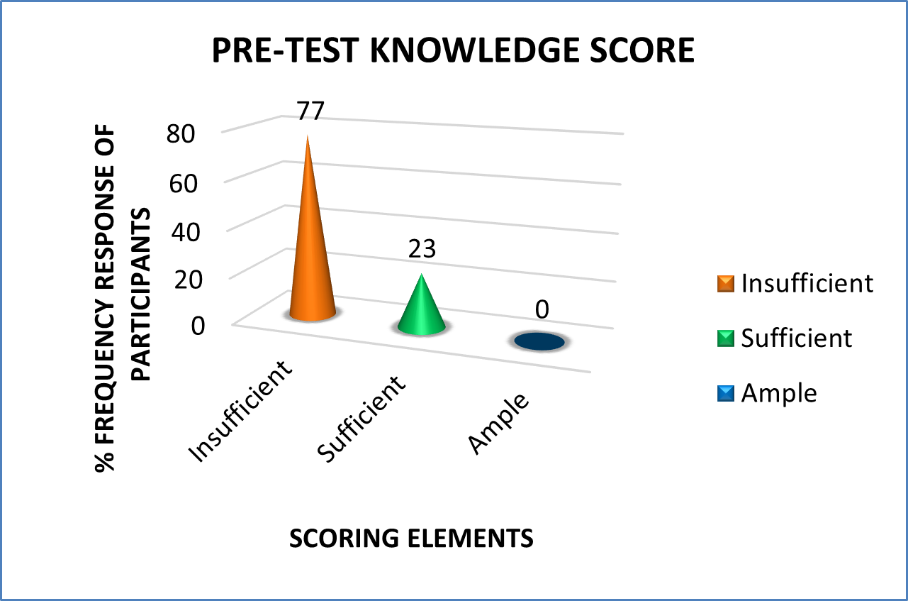 Results of the Follow-up Knowledge Assessment Score (Post-Test) Mean, Standard Deviation, and Mean Percentage of Post-Test Knowledge Score: The mean pre-test knowledge score was 19.60, with a mean percentage of 66.66.Distribution of Frequency in Post-Test Knowledge Level: The findings demonstrate that 71.7% of participants possessed Sufficient knowledge, 28.3% had Ample knowledge, and none had Insufficient knowledge.